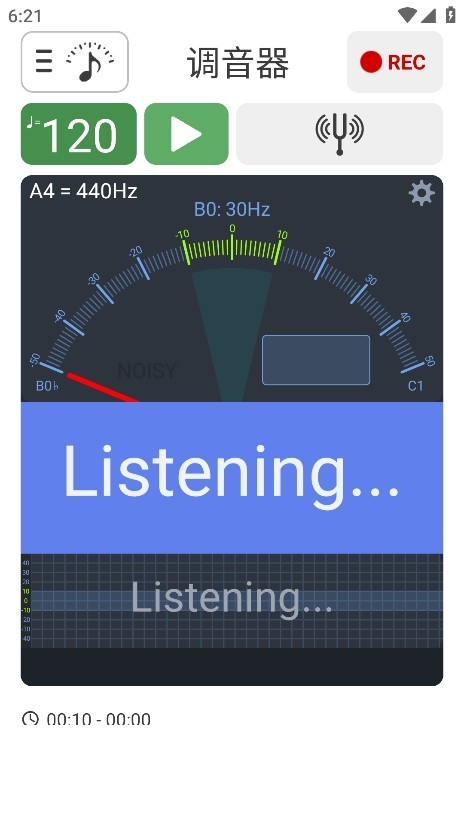 1、可自定义A4频率,默认频率为440Hz,集成一键式录音机,可快速记录演奏内容。