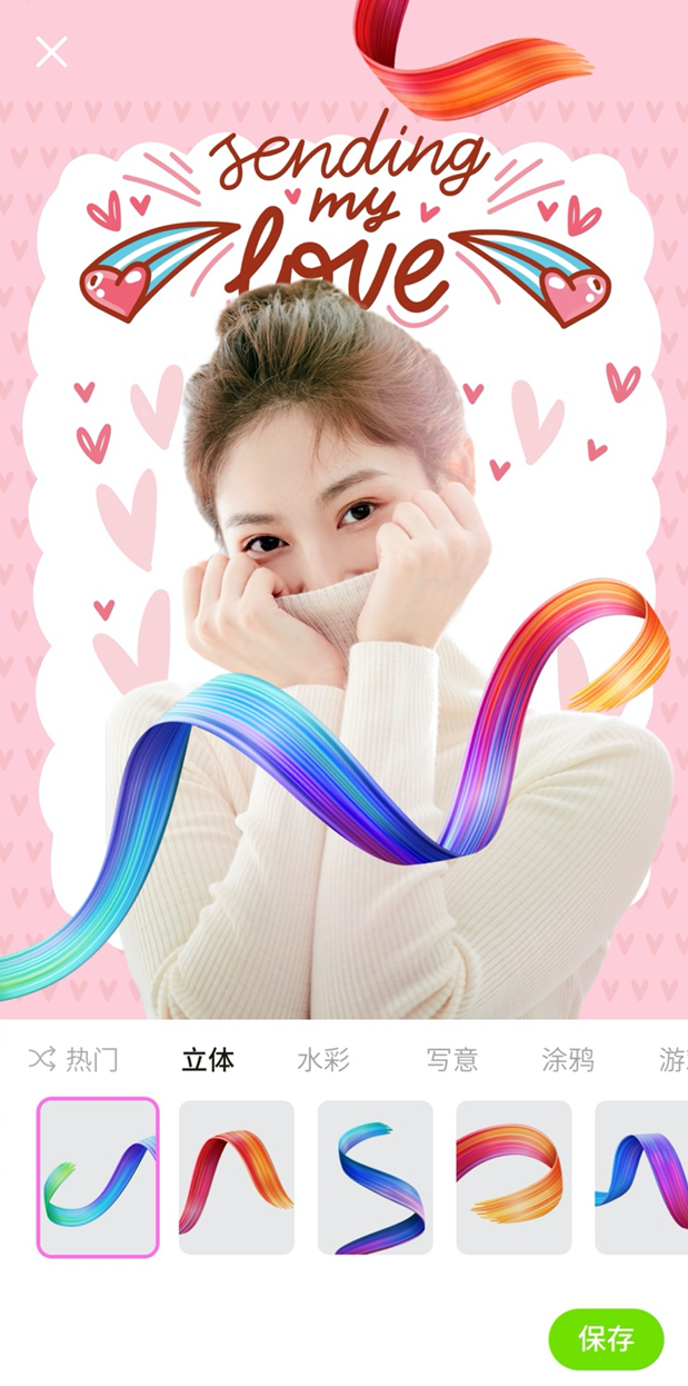 2、拥有丰富的贴纸素材库,涵盖可爱、搞怪、简约等多种风格,适合制作个性化照片,增添拍照趣味。