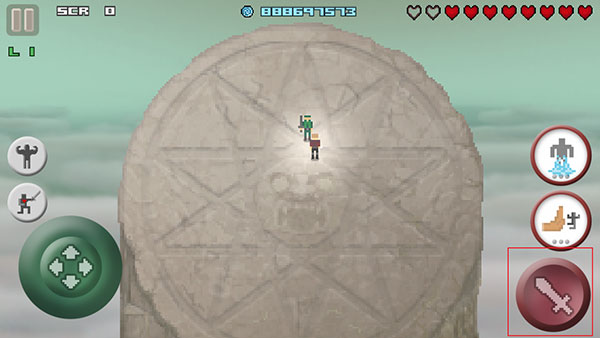 3、游戏的操作比较简单,玩家通过左下方的虚拟摇杆来控制角色跑动,点击右下角的红色按钮进行挥剑攻击。
