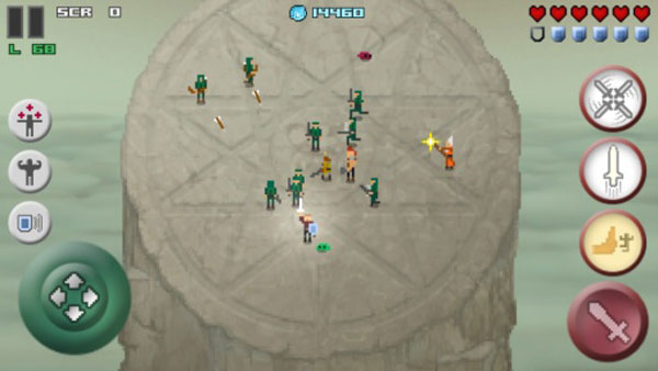 2、玩家要通过屏幕左侧的360度虚拟摇杆来控制你的角色,手持魔法之剑杀死各种敌人,并把他们扔下祭坛。