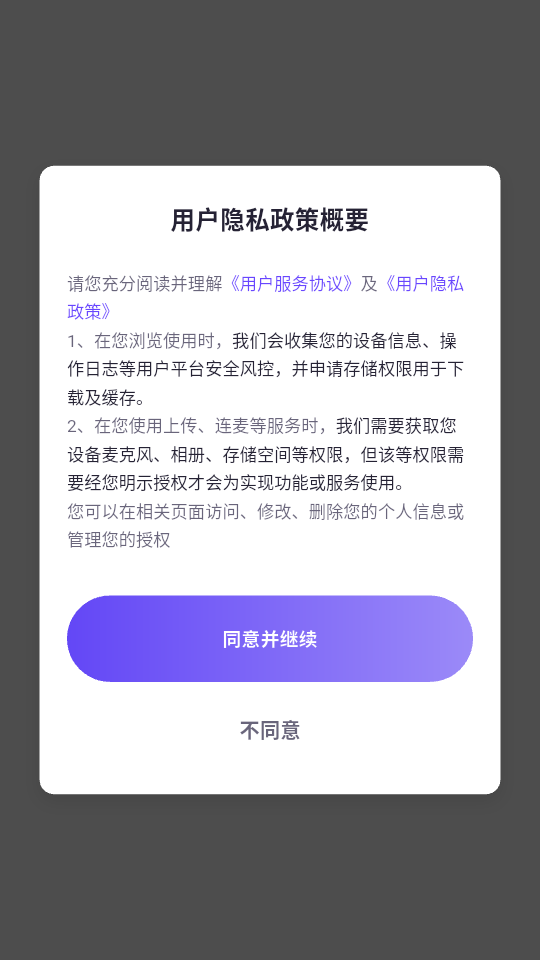 1、打开词客群记单词手机版应用,点击“同意并继续”,即可进入软件首页。