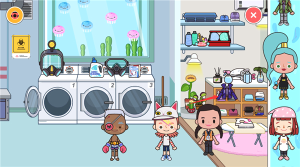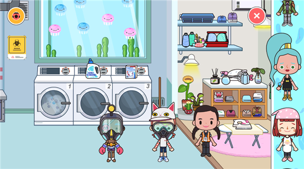 6、这里我们是进入洗衣房场景中,点击洗衣机可以将里面的衣服进行整理。