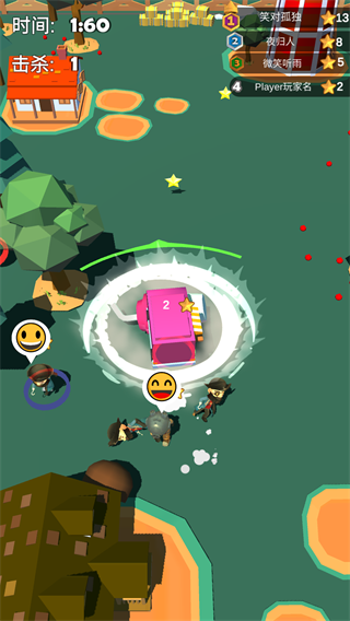 1.武器投掷攻击:进入游戏后拾取随机刷新的道具,滑动屏幕将其投掷向敌人,精准命中即可造成伤害;不同道具的投掷轨迹与攻击威力各不相同,需要灵活运用。
