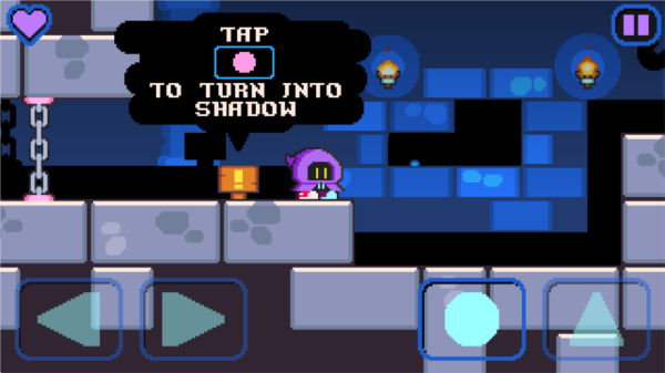 2.点击虚拟按键进行左右移动和跳跃,圆圈按钮可以让你遁入暗影之中。