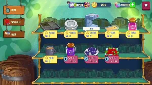完成之后,搭配上每位的果冻即可完成顾客的订单需求!随着关卡挑战项目的增加,各种美味果冻的选择搭配,以及产品的丰富性将逐一提升!