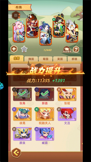 2、通过升级主公和武将提升伤害,金币可以通过闯关收集。