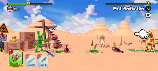 3、游戏采用回合制对战,你可以吸收场景中的各种物品充当子弹,然后瞄准对手发射子弹;