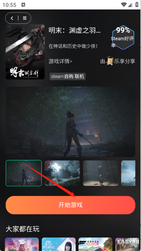 5、点开心仪的游戏进入详情页,点击页面中的“开始游戏”按钮,即可直接畅享云游戏。
