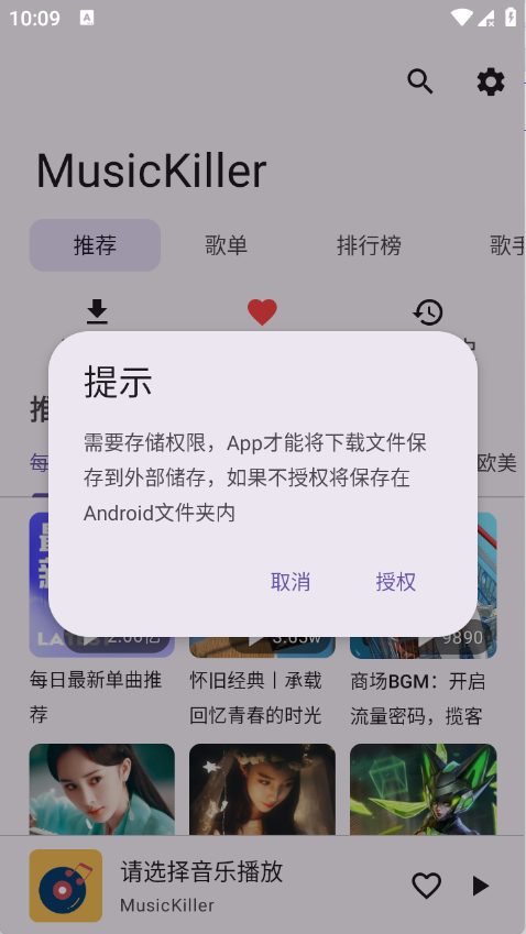 1、用户在当游网下载MusicKiller app,安装完成后打开应用,授予软件所需的相关权限。
