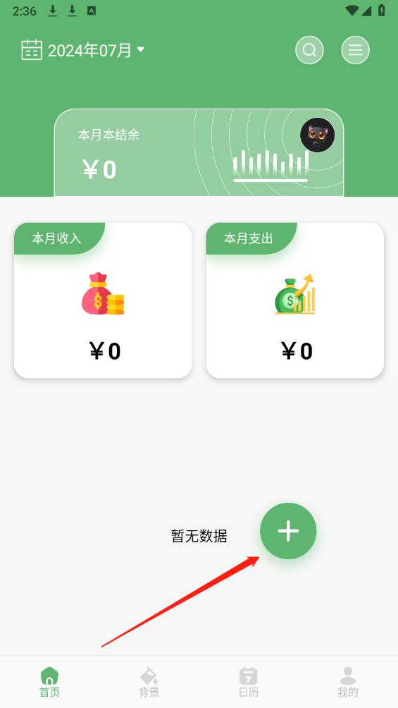 2、进入app主界面后,找到首页显眼的“+”按钮,点击该按钮即可进入记账页面。