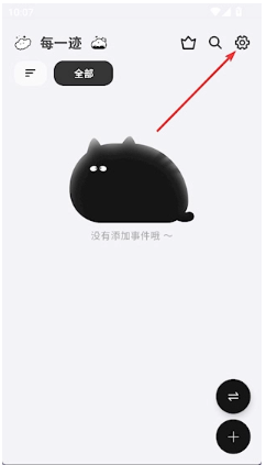 1、打开每一迹app,进入主界面后,找到右上角的齿轮形状设置按钮,点击进入设置菜单。】
