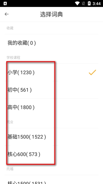 2、根据自身情况选择对应的英语学习阶段,涵盖小学、初中、高中三个阶段可供挑选。