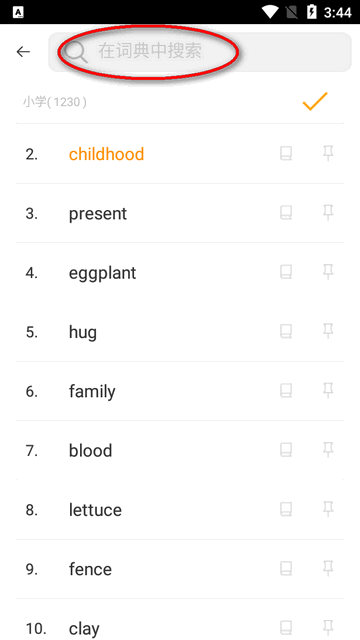 3、进入软件主界面后,可通过顶部搜索框输入关键词,快速查找所需单词。