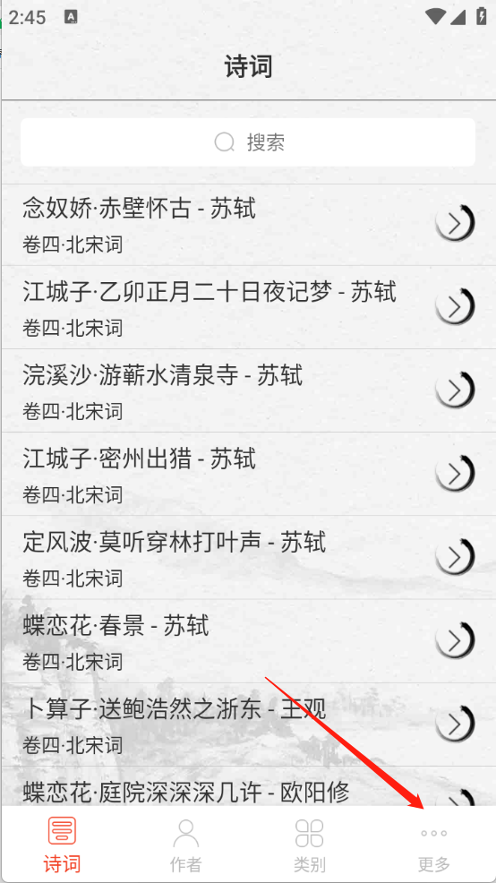 4、具备宋词搜索功能,输入作者或诗词名称,均可精准找到对应内容。