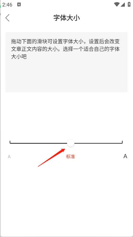 3、页面会出现调节拖动条,通过拖动滑块即可调整合适的字体大小。