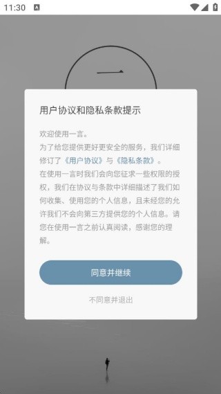 1、在手机应用商店中查找并下载一言app,仔细阅读协议与隐私条款后点击同意并继续。