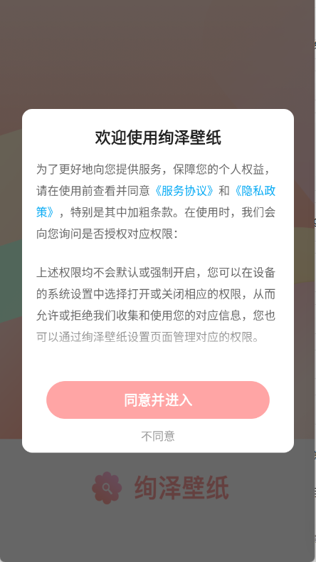 1、在本站下载绚泽壁纸app,打开后点击同意相关协议,即可进入软件。