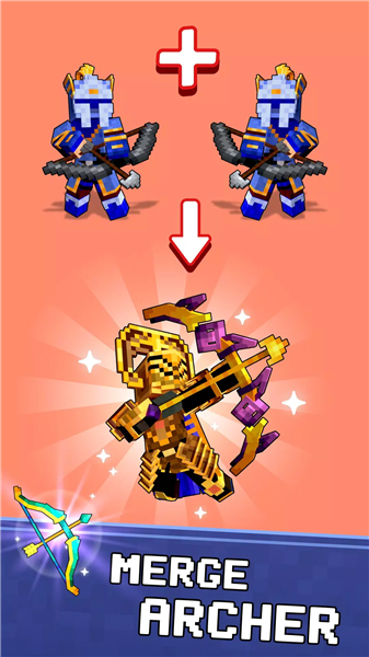 1.融合进化:运用战争融合机制,将相同的单位组合起来。见证你的普通士兵蜕变为拥有强大力量的精英弓箭手传奇!