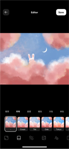 2、 滤镜调色:内置数十种风格滤镜,可调节亮度、对比度与饱和度,精准控制画面色调,营造不同氛围效果。