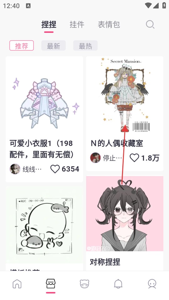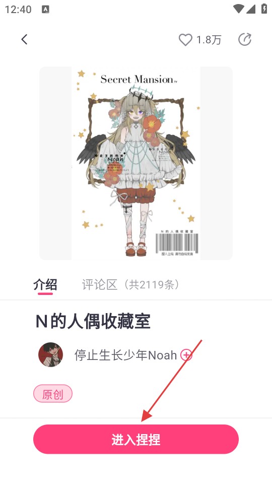 2、在该页面选择目标创作,如“N的人偶收藏室”,进入对应详情页。