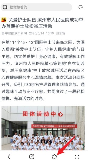 2、浏览网页时,点击“星星”图标,可将常用网站保存,方便下次快速访问。