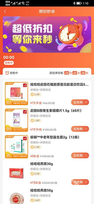 2、限时秒杀板块内,上架好货低至几折,可随时参与秒杀,解锁高性价比好物。