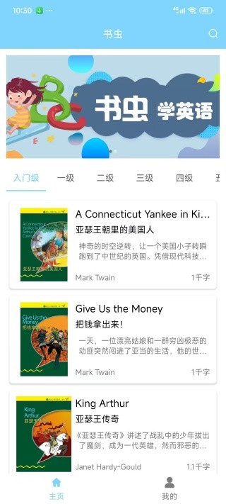 2、进入软件后,可看到多种英语材料,根据自身实际能力选择使用;