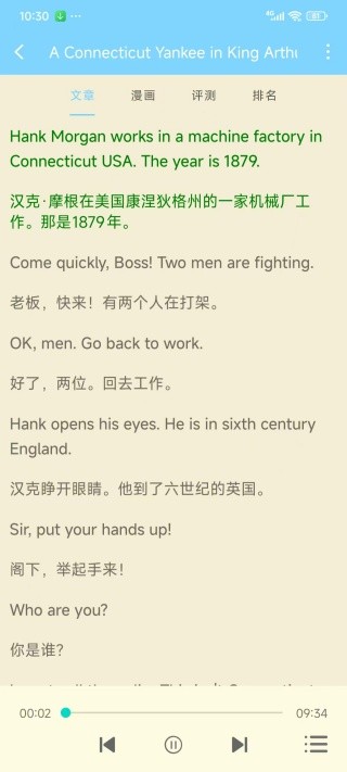 3、任意点击一款材料进入,即可查看英汉双语文章内容;