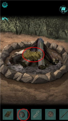 3、将草放到火堆上然后用刚刚得到的镜片引燃;