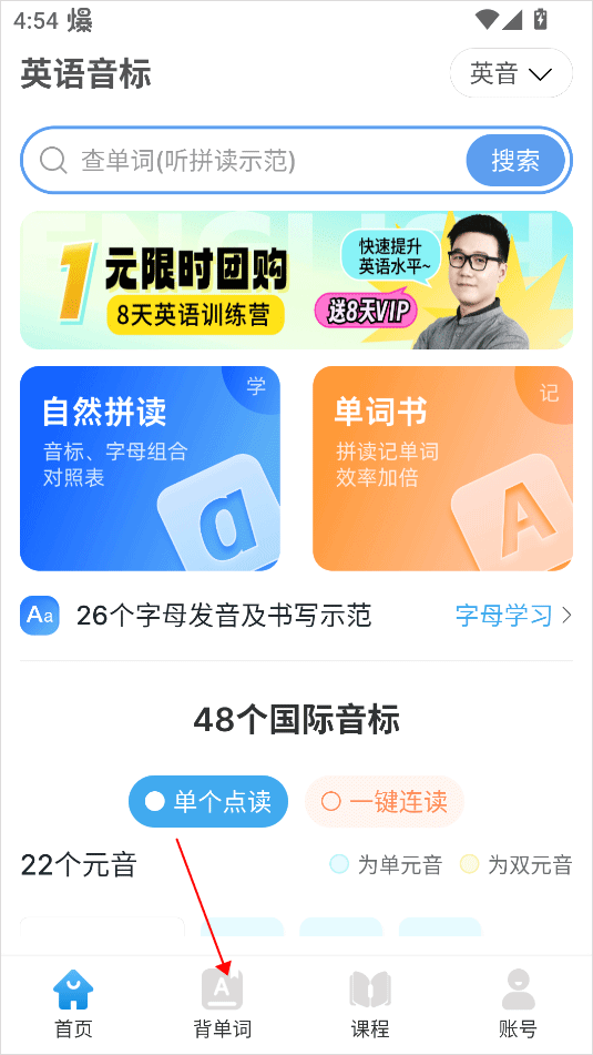 1、完整收录48个国际音标,朗读发音清晰,保障学习内容权威性,适配零基础到进阶各阶段需求。