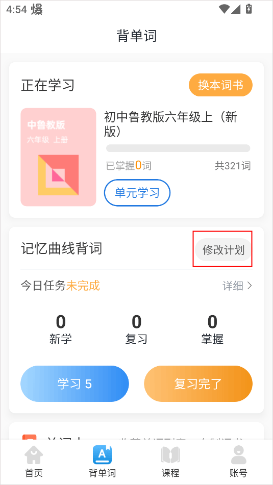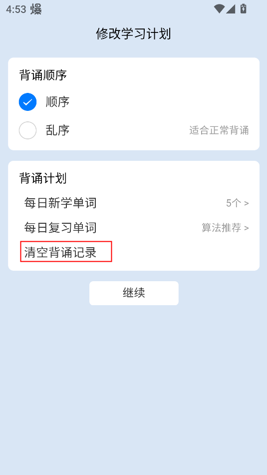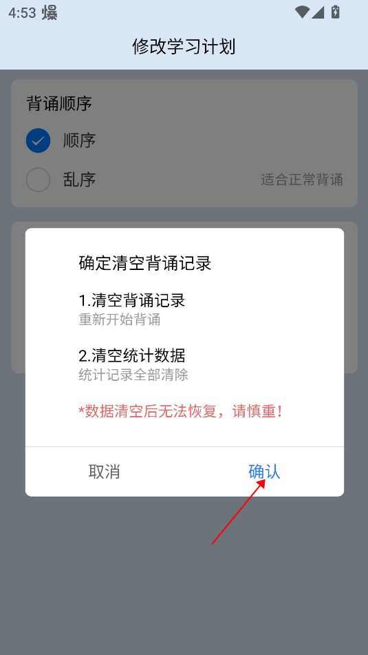 3、跳转至修改学习计划页面,找到并点击清空背诵记录选项;