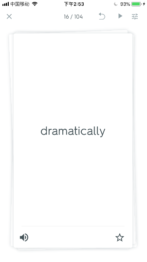 3、还可以根据记忆程度来标记,向左滑表示需要再次学习,向右滑表示已经记住了这个单词。也可以直接点击右下角星号来标记这个单词。