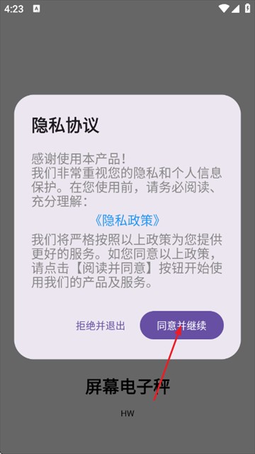 1、打开屏幕电子秤app,仔细阅读并同意《隐私协议》,完成基础授权操作。