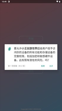 1、在本站下载并打开小王创游世界软件,按照提示获取超级权限,完成基础授权。