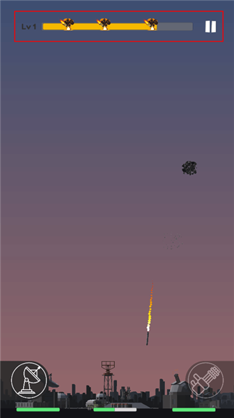 6、玩家需要承受三波导弹的攻击之后,才能获得胜利,就是等上方的橙色进度条满了之后就能通关了。