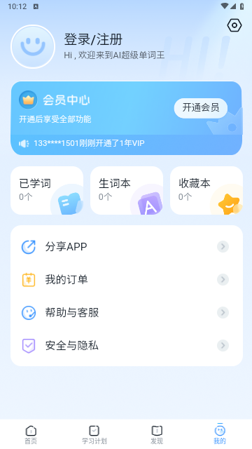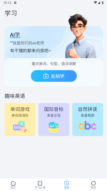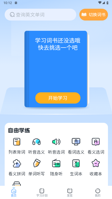 1、在对应平台下载安装AI超级单词王APP,完成安装后,启动应用进入主界面即可开始使用。