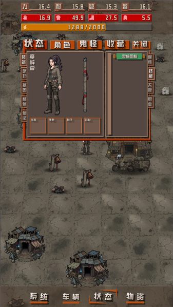 1、角色的各项状态(包括血量、体力、饥饿值等)会实时展示在游戏画面的指定区域,清晰直观,当角色状态不佳、血量过低时,玩家需要及时使用恢复类道具、返回营地休息等方式恢复血量,避免角色死亡导致游戏进度受损或资源丢失。