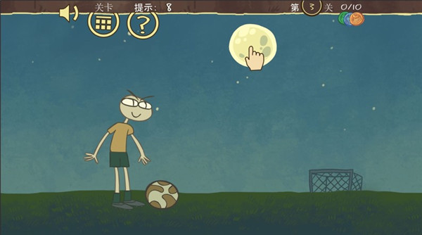 3.第三关:先点击天上的月亮,等月亮落地,然后点击月亮就可以过关了,