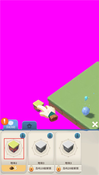 2、接下来就可以使用刚才收集的泥土来建造自己的岛屿了。