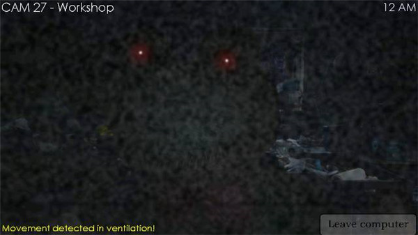 电话响起,传来一段模糊的语音:“呃……哈喽!嗯,我就知道你会回来上班。三年了啊……还记得2004年的事吗?那次爆炸,破坏者用大炮把这里炸毁了!所有人都逃出去了。”我问:“你怎么知道这些?”对方回答:“你现在还不该知道。路上看到的黑影……我也说不清。唉,困了,睡吧。”挂断后,一切平静。0:00,第一夜开始,没有任何玩偶活动,非常安全。监控画面太多,一时难以兼顾。0:45我打了个盹。2:00醒来查看监控,发现27号区域出现一个诡异人影,像醉汉又像老头,难道真的闹鬼?2:45极度困倦,再次睡着。5:58惊醒,时间终于快到了。6:00,首夜成功撑过。