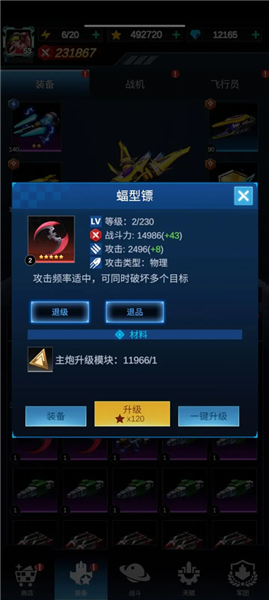 推荐蝠型镖,可以自动攻击多个目标尤其是超武后,分裂出大量子弹,是打击小怪以及多炮台boss的利器。