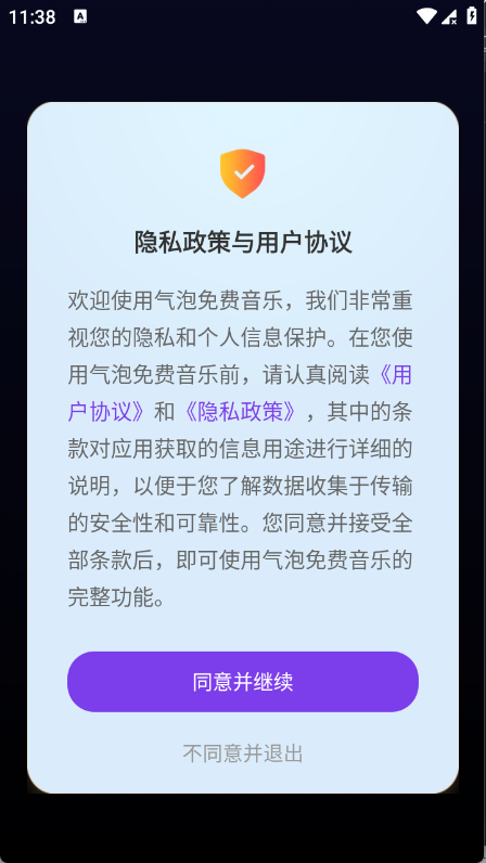1、在当游网下载气泡免费音乐app,安装完成后点击同意相关协议;