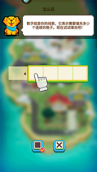 1、数字就是你的线索,它表示需要填充多少个连续的格子,现在试试填充吧!