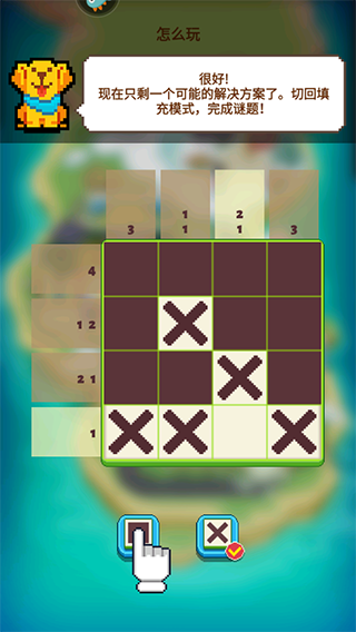 6、很好,现在只剩一个可能的解决方案了,切回填充模式,完成谜题!