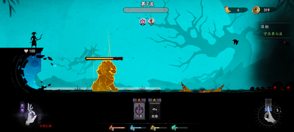 4、 横版塔防布局:角色自动攻击,玩家专注符咒投放时机与位置,策略决定胜负走向。