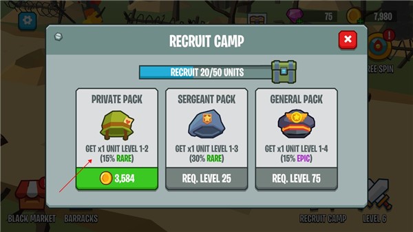 2、点击开始购买士兵,这里出来的都是随机的士兵种类
