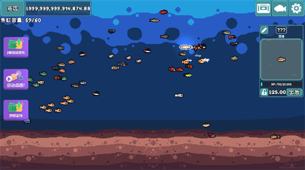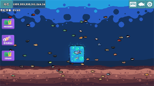 2、随着游戏推进,可逐步购买更多种类的鱼类,不断丰富水族箱的品类,解锁更多饲养空间,饲养更多不同类型的鱼类。
