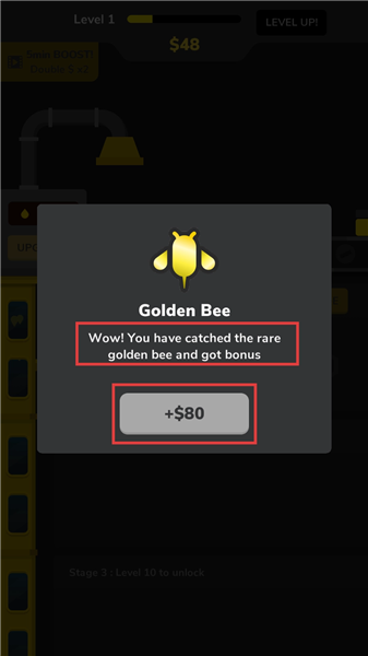 4、要是碰到稀有黄金蜜蜂,成功捕捉到之后,点击就能领取奖励,帮助工厂发展。