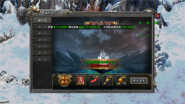 4、当达到一定等级后还可挑战福利BOSS,获取强力装备;