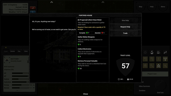 在城市中艰难前行时,你会偶尔遇到未被感染的其他幸存者。可以选择与他们合作、交易物品,也能偷走他们的供给,以自己的方式寻找生存之道。